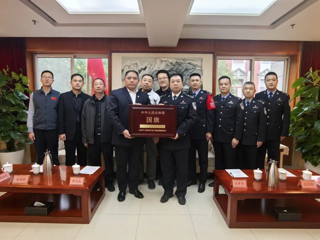 11月7日,北京市人民政府天安门地区管理委员会向漳州市公安局漳州110支队赠予天安门国旗仪式在京举行。天安门地区管委会、漳州市人民政府负责同志代表双方签订《国旗赠予协议》,并现场交接国旗、证书。