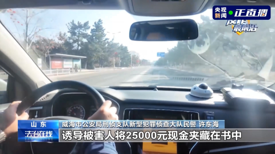 威海市公安局刑侦支队新型犯罪侦查大队 许东海:我们迅速锁定了受害人,询问得知,诈骗分子以高回报投资为诱饵,诱导受害人将25000元现金藏匿在书中,通过快递邮寄至省外指定地址。