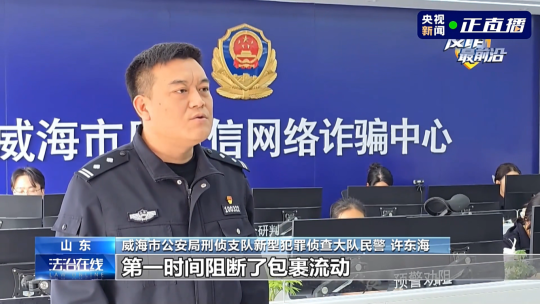 威海市公安局刑侦支队新型犯罪侦查大队 许东海:我们第一时间联系承运快递公司,协调企业立即启动紧急拦截程序,第一时间阻断包裹流动。