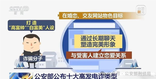 诈骗分子打造“高富帅”“白富美”人设,在婚恋、交友网站物色目标。通过长期聊天塑造完美形象,与受害人建立恋爱关系。最后以遭变故、急用钱等理由索要钱财,直至受害人察觉或无力支付。