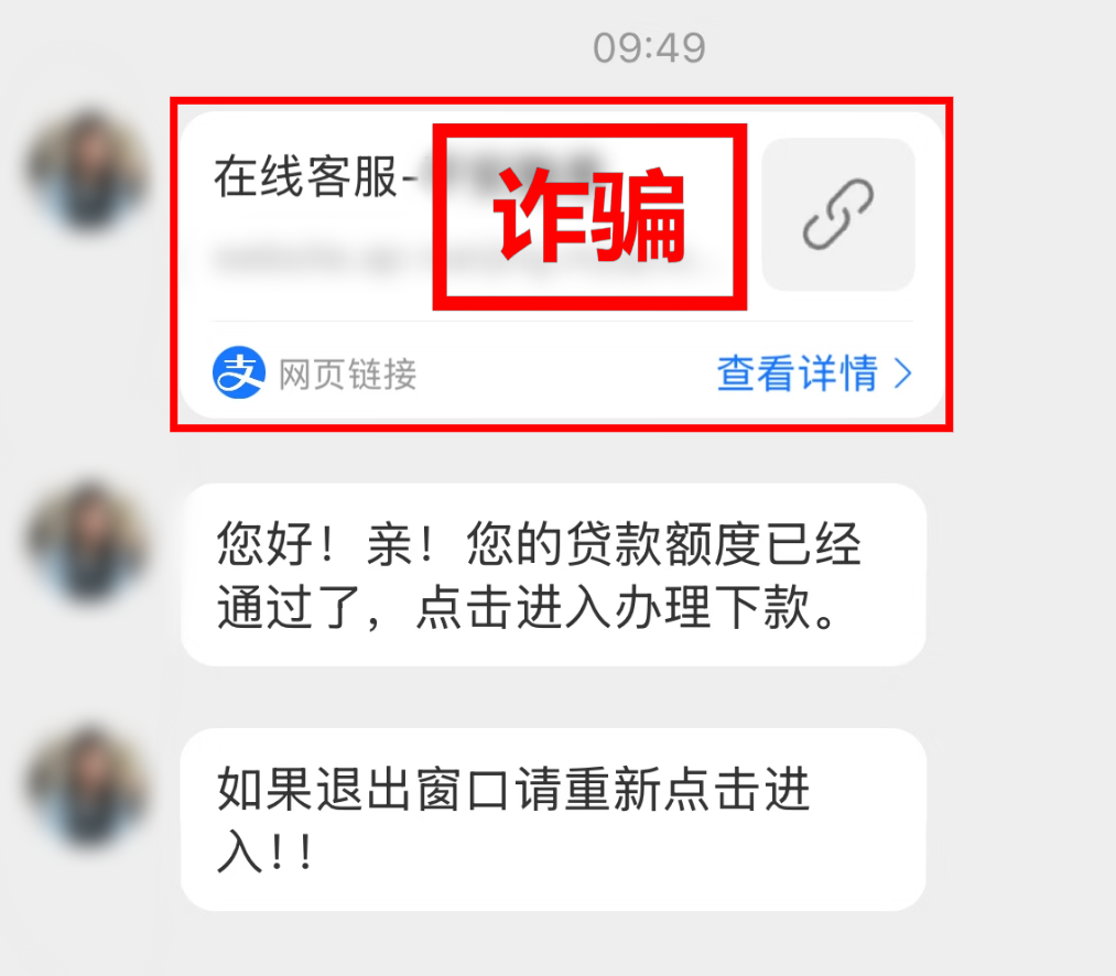 骗子通过支付宝的“好友申请”引流,附言 “有贷款需要加”,精准找到有贷款需求的受害人。再利用受害人急需贷款的心理,通过层层设套骗取钱财。