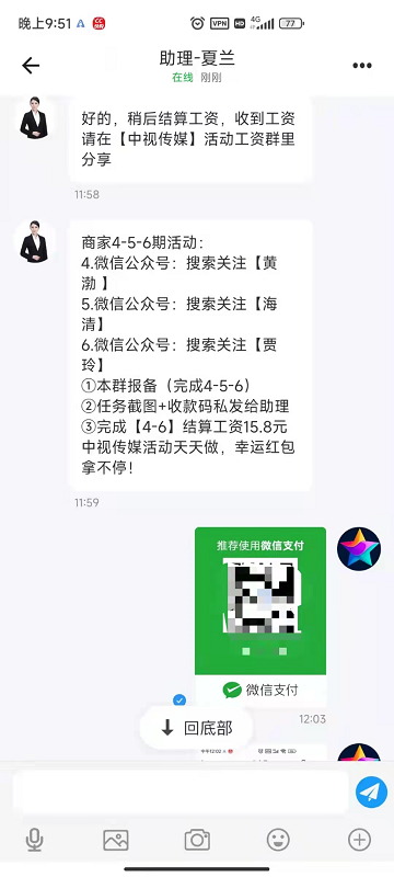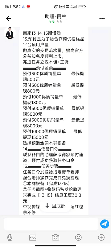为了取信于受害者,任务导师会请受害者试做一单,并给予一个小额的红包奖励。