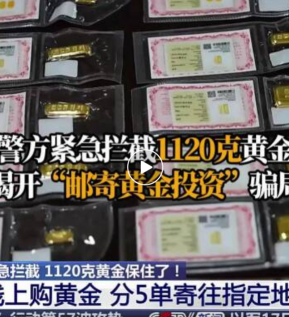 警方表示,凡是陌生人在网上引导购买黄金等贵重物品并寄送到不明地址的,百分之百是诈骗。