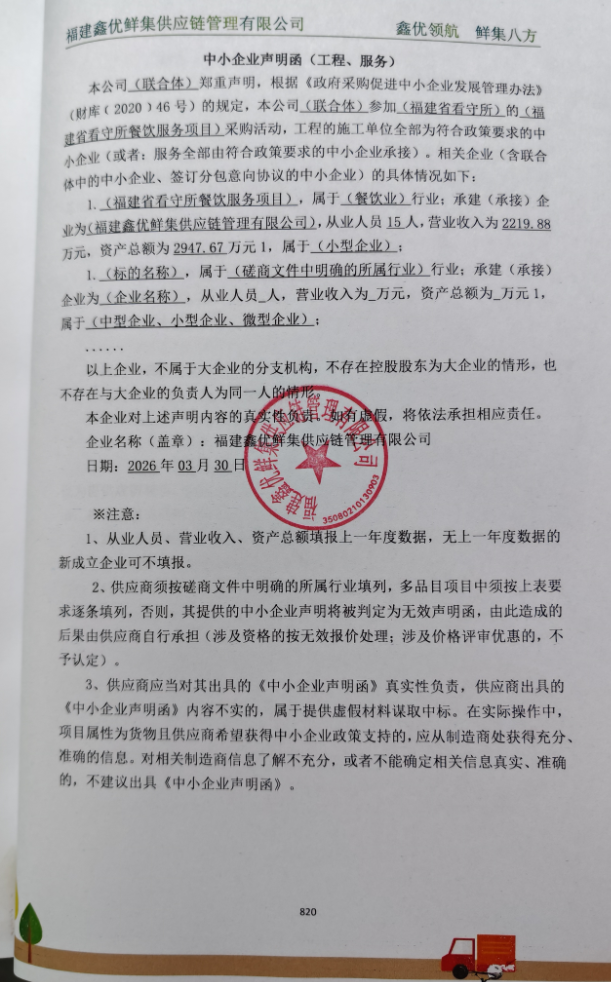 3、根据综合得分由高至低排序,磋商小组一致推荐:福建鑫优鲜集供应链管理有限公司为本项目采购包1第一成交候选供应商;福建省豫尚餐饮有限公司为本项目采购包1第二成交候选供应商;福建省久号餐饮管理有限公司为本项目采购包1第三成交候选供应商。